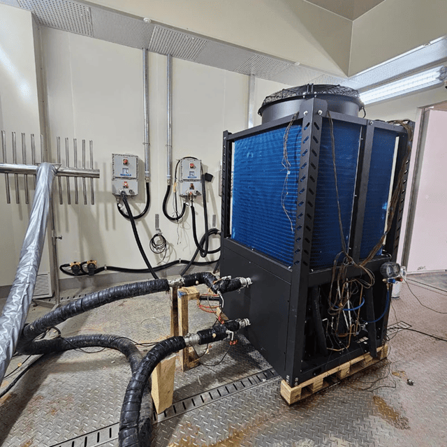 Ogni pompa di calore viene connessa all’acqua e testata in condizioni operative simulate, assicurando prestazioni eccellenti e massima affidabilità.