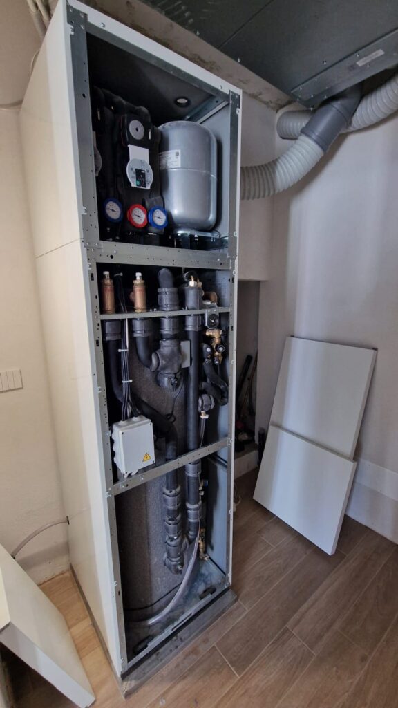 Importante intervento di ristrutturazione in ambito residenziale, con installazione di un impianto radiante a soffitto abbinato alla pompa di calore Exinda serie Eliàn 09, completa di Modulo E-Box 250. La gestione intelligente e precisa dell’impianto è affidata alla termoregolazione Sinum di Tech Controllers, per garantire efficienza, comfort e sostenibilità.